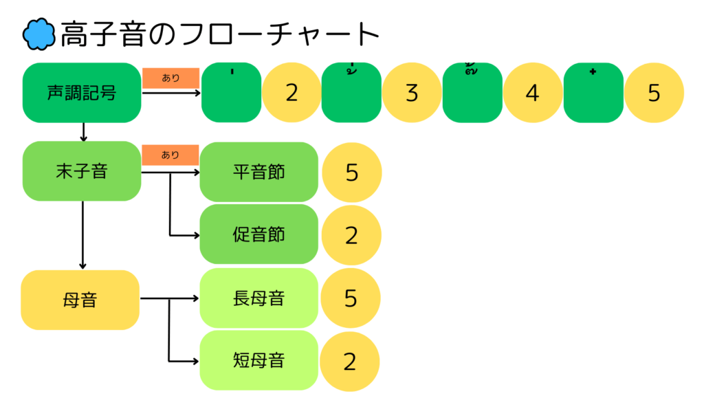 子音の区別 → 声調の有無 → 末子音の有無 → 母音の長短