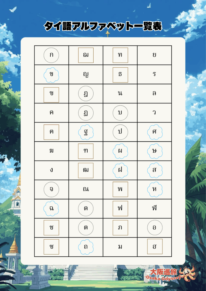 未分類「タイ語のアルファベット一覧を印刷したい!」